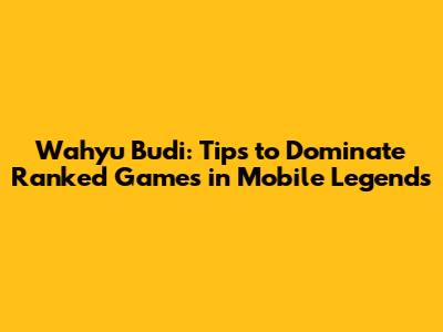 Wahyu Budi: Tips To Dominate Ranked Games In Mobile Legends