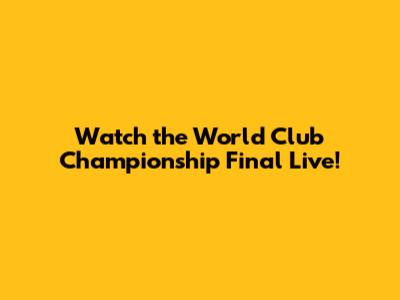 Watch The World Club Championship Final Live!