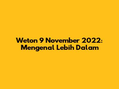 Detail Weton 9 November 2022: Mari Kita Bedah!