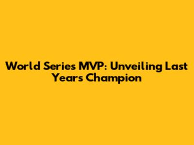 Unveiling Last Year's World Series MVP