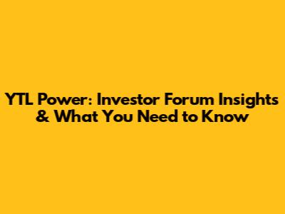 YTL Power: Investor Forum Insights & What You Need To Know