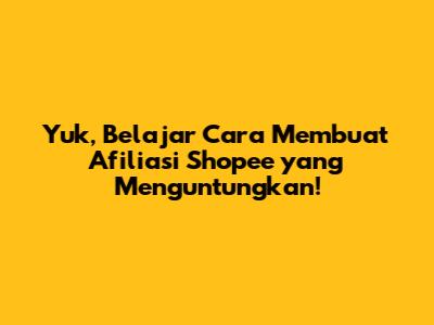 Mau tahu cara membuat Afiliasi Shopee yang bisa kasih kamu cuan tambahan? Tenang, guys, artikel ini bakal ngebahas tuntas gimana caranya! Program afiliasi Shopee ini emang lagi hits banget, karena kamu bisa dapet komisi dari setiap penjualan produk yang kamu promosikan. Asyik, kan? Apalagi buat kamu yang suka banget belanja online atau punya banyak teman yang hobi belanja. Dengan menjadi afiliasi Shopee, kamu bisa mengubah hobi belanja dan interaksi sosialmu menjadi sumber penghasilan. Jadi, tunggu apa lagi? Mari kita mulai belajar cara daftar dan memaksimalkan program afiliasi Shopee ini!