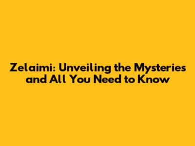 Zelaimi: Unveiling The Mysteries And All You Need To Know