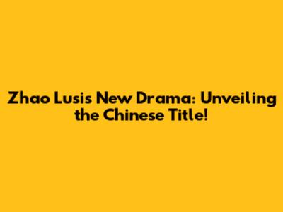 Zhao Lusi's New Drama: The Chinese Title Revealed!