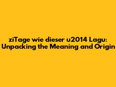 ZiTage Wie Dieser U2014 Lagu: Meaning & Origin